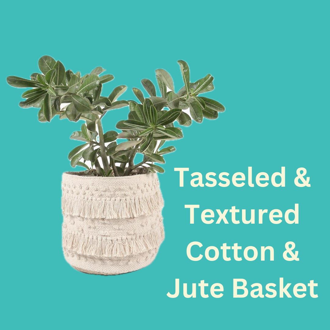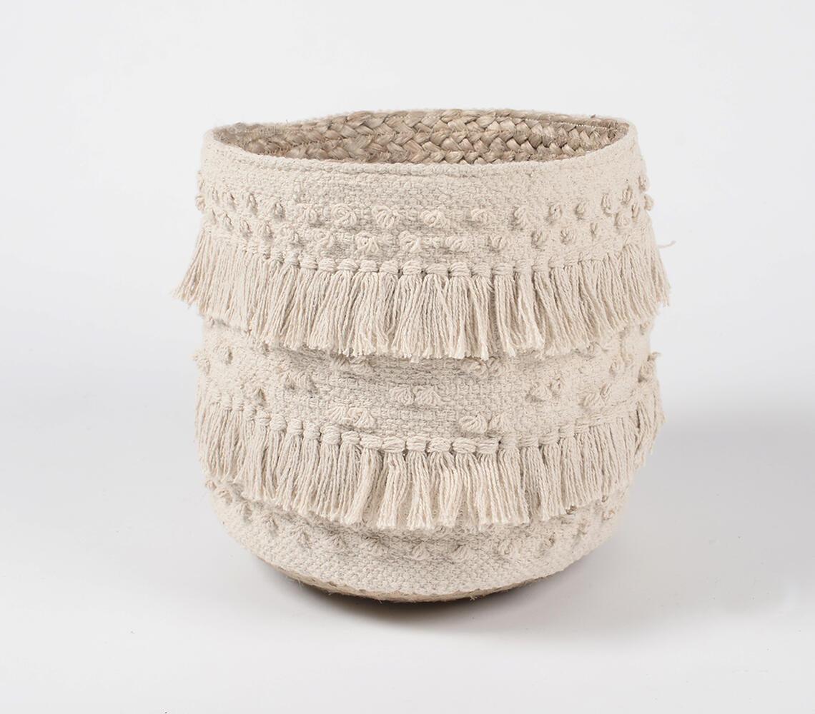 Tasseled & Textured Cotton & Jute Basket