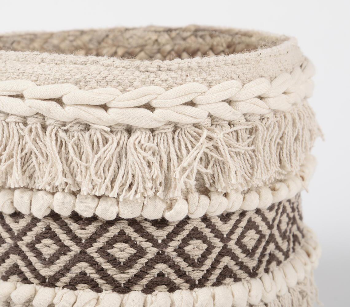 This functional yet fantastic storage basket has an eclectic aesthetic and seamlessly blends into contemporary living spaces. Featuring jute and cotton, it is as eco-friendly, sustainable and durable as can be. Moreover, it could double up as a planter for a coy corner plant in any home! A favorite among environmentalists, jute has a negligible carbon footprint. It is also biodegradable and 100% compostable. The fibers are first extracted by a process called retting wherein jute stems are bundled together and immersed in low, running water. After which, in a process called stripping, the non-fibrous matter is scraped off, while the fibers found inside the jute stem are retained for hand braiding by talented women artisans from India. The textile is a result of skillful handweaving, a strenuous process that requires perfect rhythm and coordination. The craft has stayed true to its roots even in the face of severe competition from power looms and employs more than 4.4 million weaver families!